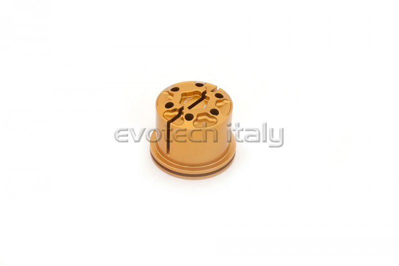 Ergal nuts machined from ergal 7075-T6 bars through sophisticated numerical control machineries. The six pockets and the six frontal holes realized on the nut give it less weight compared to the original component. These lightening don’t preclude the resistance of the product and in fact the chiselling has not been realized on the key torque point. The assembly is very easy: through a simple hexagonal key.