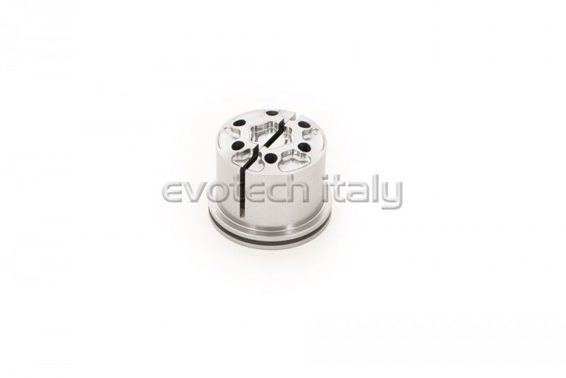 Ergal nuts machined from ergal 7075-T6 bars through sophisticated numerical control machineries. The six pockets and the six frontal holes realized on the nut give it less weight compared to the original component. These lightening don’t preclude the resistance of the product and in fact the chiselling has not been realized on the key torque point. The assembly is very easy: through a simple hexagonal key.