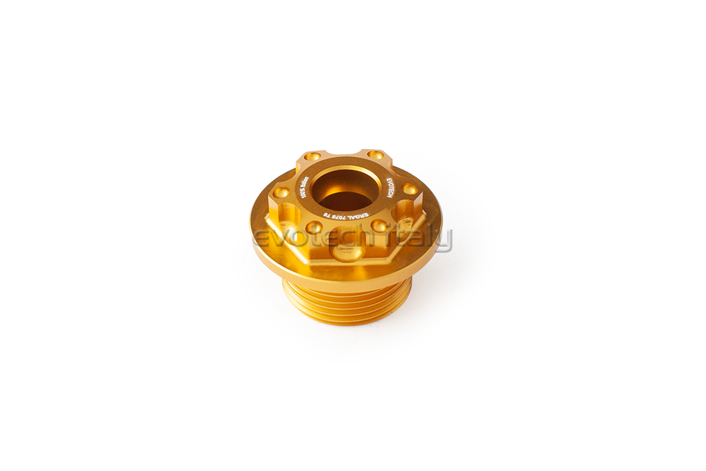 Ergal nuts machined from ergal 7075-T6 bars through sophisticated numerical control machineries. The six pockets and the six frontal holes realized on the nut give it less weight compared to the original component. These lightening don’t preclude the resistance of the product and in fact the chiselling has not been realized on the key torque point. The assembly is very easy: through a simple hexagonal key.