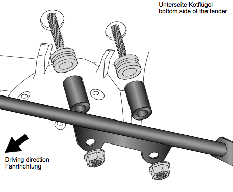 Door deze bevestigingsbeugel te monteren is het mogelijk om de verstevigingsbeugelset te monteren. Dit is alleen noodzakelijk wanneer er geen kofferrek gemonteerd is. Is er wel een kofferrek gemonteerd, dan wordt de verstevigingsbeugelset op het kofferrek bevestigd.