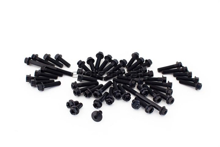 Engine bolts kit made of Ergal 7075 T6. This kit includes bolts with the same lenght of the original ones. Unscrew one bolt by one and change them with the new ones. It is recommended to oil the thread with grease during the assembly.