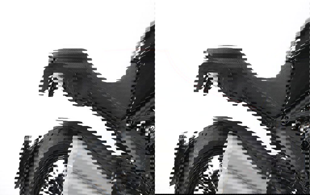 C-Bow tasdragers in de kleur zwart van het merk Hepco&Becker voor de Ducati Diavel 2011-2018 Op deze C-Bow dragers kunnen alle Hepco&Becker tassen en koffers met C-Bow aansluiting bevestigd worden.