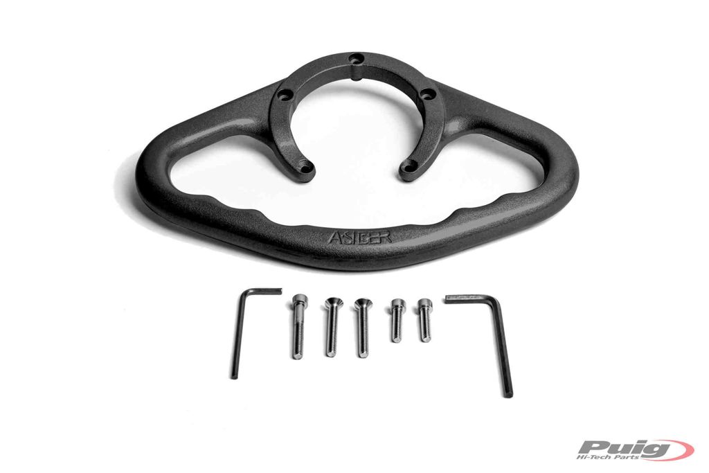 Lichtgewicht aluminium handgreep voor de duopassagier. Hierdoor hoeft de duopassagier zich niet meer vast te houden aan de tank.