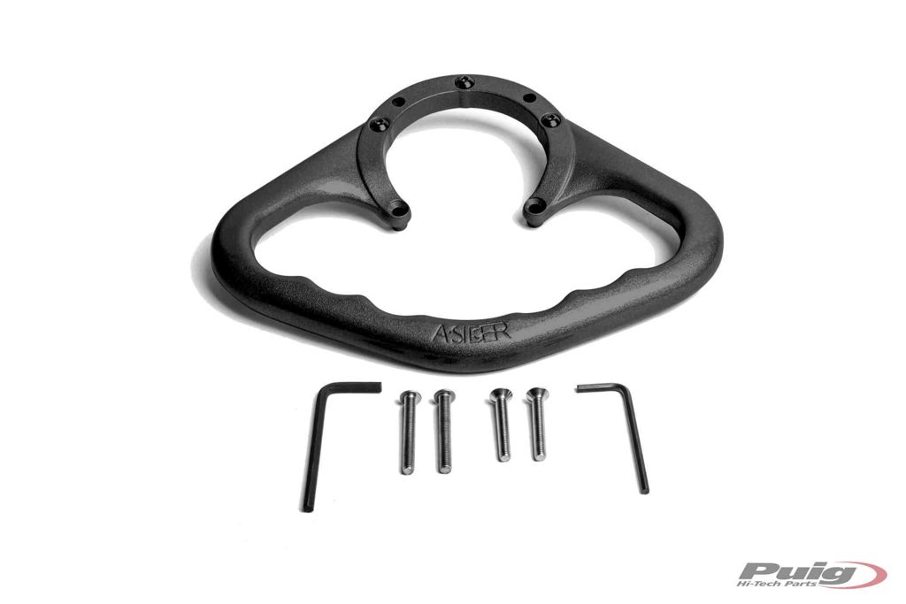 Lichtgewicht aluminium handgreep voor de duopassagier. Hierdoor hoeft de duopassagier zich niet meer vast te houden aan de tank.