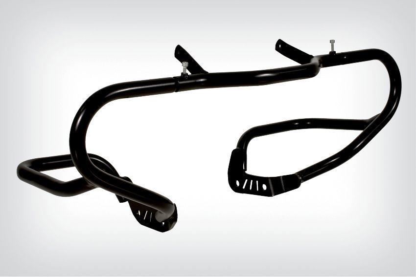 A particularly well designed engine protection bar reliably protecting the cylinders and the entire machine from damages. Considering the meanwhile over 100,000 kilometres of experience with this construction, we can rightfully claim to carry the probably technically most mature GS engine protection bar series. Altogether six mounting points absorb all impact forces securely, causing the engine protection bar to only absorb kinetic energy without damaging other components. The leverage forces are distributed across all six mounting points in the case of a crash. The central mount provides uniform distribution and functions as a pivotal point in case of a fall. The integrated valve cover protection bar is particularly important as it has protected us already for times from total engine damages. Off-road capability is increased because now you can safely negotiate deep track grooves or worn-down curves. The engine protection bars form a homogenous coherent unit together with cylinders and headers. The facts:- Uniform distribution of forces.- Strong mounting points.- Additional protection for the valve covers (original protectors can be removed).- All maintenance work (oil change, valve adjustment etc.) is possible without removing the crash bars.- Elaborately bent round tubes.- Does not compromise ground and cornering clearance.- Plastic-coated steel tubing.- Detailed and easy to understand instructions.- Made in Germany. Does not fit in combination with original BMW cylinder protection from model 2008. Does not fit in combination with the original BMW tank guard.