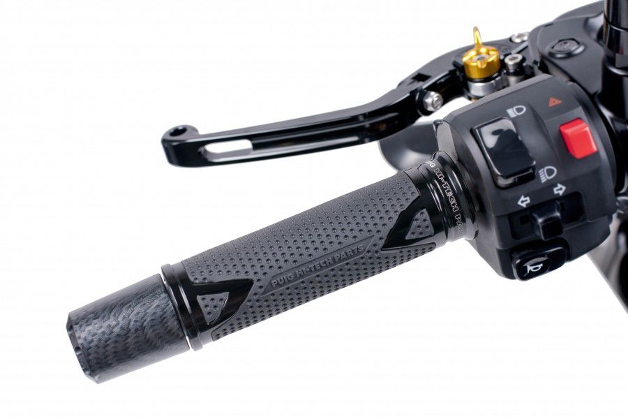 Deze handvatten van het merk Puig zijn gemaakt van geadoniseerd aluminium en kunststof. Ze worden geleverd per set van twee en zijn geschikt voor een stuur met een diameter van 22mm. Leverbaar in diverse kleuren. De lengte van het handvat is 119mm.