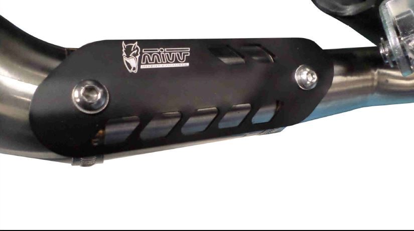 Hitte schild van het merk MIVV. Eenvoudige montage met 2 klemmen om de bocht. Zwart geanodiseerd, met gelaserd logo.