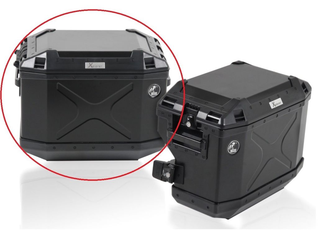 Xplorer zijkoffer in de kleur zwart van het merk Hepco&Becker 40 liter links voor Cutout kofferset
