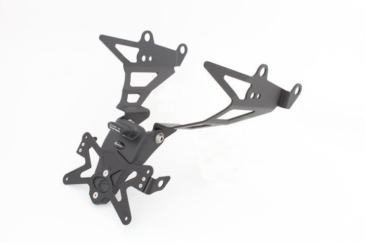 Bent u op zoek naar een mooie kentekenplaathouder voor uw motor? Dan is de Evotech kentekenplaathouder een perfecte keuze. Deze Evotech kentekenplaathouder wordt in Italie ontworpen en geproduceerd. Deze revolutionaire kentekenplaathouder is verstelbaar, extreem licht en gemaakt van zwart geanodiseerde, door laser uitgesneden aluminium onderdelen, Het kentekenplaat gedeelte is gemaakt van een techno-polymer materiaal met anti vibratie systeem.
