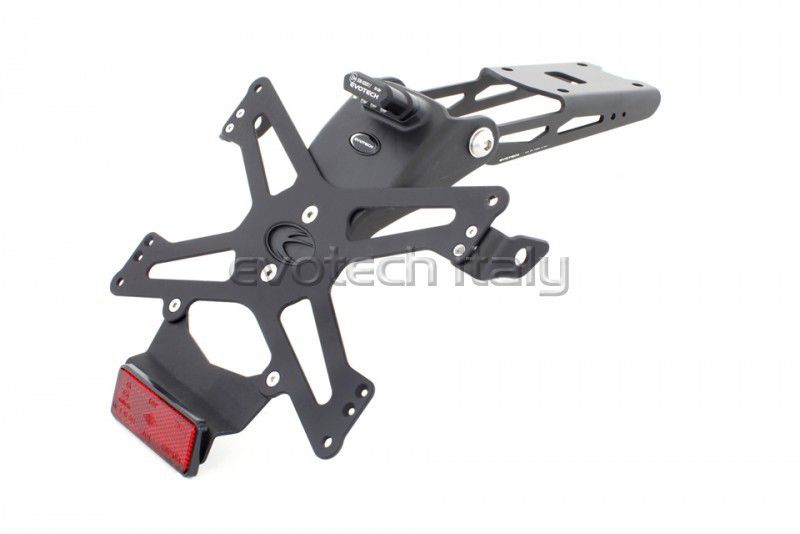 Deze Evotech kentekenplaathouder wordt in Italie ontworpen en geproduceerd. Deze revolutionaire kentekenplaathouder is verstelbaar, extreem licht en gemaakt van zwart geanodiseerde, door laser uitgesneden aluminium onderdelen, Het kentekenplaat gedeelte is gemaakt van een techno-polymer materiaal met anti vibratie systeem.