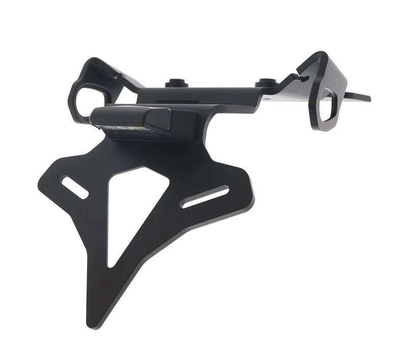 Mooie aluminium kentekenplaathouder van Evotech Performance! -zwart gepoedercoat aluminium -eenvoudige montage -inclusief bevestiging materiaal en montage handleiding (online) -geen aanpassingen aan uw motor nodig -inclusief LED kentekenplaatverlichting -inclusief beugels voor montage originele knipperlichten