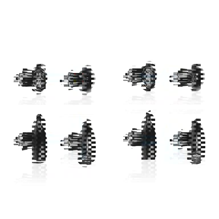 Mooie set LED knipperlichten van het merk Chaft, model Bobber -zwart aluminium behuizing met transparant glas-met CE keur-afmeting: 37x39mm-12V x 2,3W (knipperlicht)Let op! Na het monteren van LED knipperlichten moet er meestal een ander knipperlichtrelais of weerstanden gemonteerd worden, anders kunnen de knipperlichten sneller gaan knipperen.
