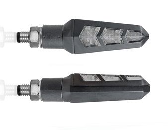 Mooie set LED knipperlichten van het merk Chaft, model Harvest-aluminium behuizing met getint glas-met CE keur-afmeting: 70x22mm-12V x 2WLet op! Na het monteren van LED knipperlichten moet er meestal een ander knipperlichtrelais of weerstanden gemonteerd worden, anders kunnen de knipperlichten sneller gaan knipperen.