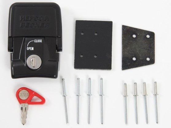 Met dit slot wordt een Hepco&Becker zijkoffer aan een Hepco&Becker kofferrek bevestigd. Het slot wordt geleverd ZONDER cylinder/ sleutel MET popnagels voor de bevestiging. Zie pdf voor de montage.