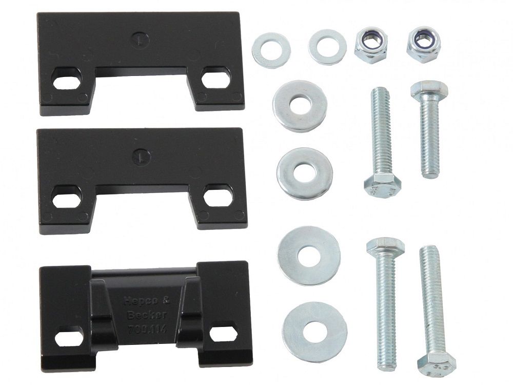 Adapterset om een Alu Box of Alu Exclusiv koffer te kunnen bevestigen op een H&B kofferrek. De set is om 1 koffer te kunnen monteren!