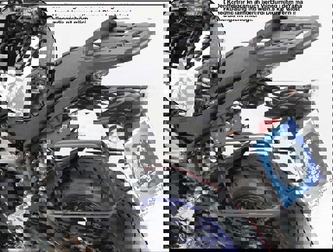Lock it systeem: Het kofferrek word aan de motor bevestigd met speciale Lock it bouten waardoor het rek snel en eenvoudig te monteren en te demonteren is. Wanneer het rek niet gemonteerd zit, ziet u alleen de lock-it bevestigingspunten. U hoeft dus niet meer met een kofferrek aan uw motor rond te rijden als u het niet gebruikt. Website Hepco & Becker: www.hepco-becker.de