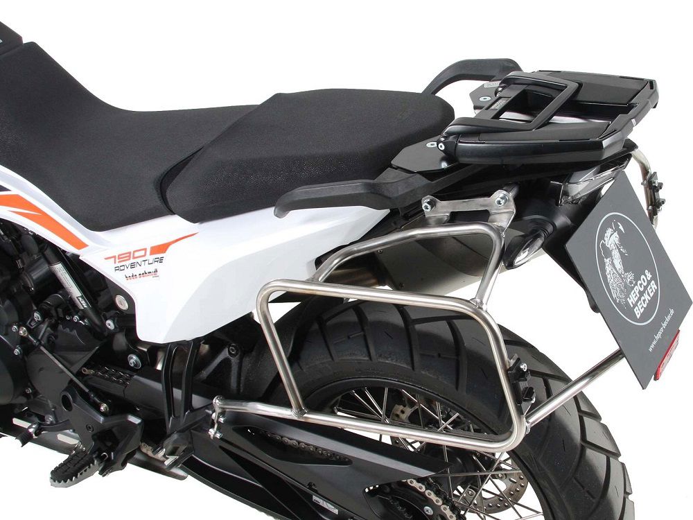 Complete kofferset van Hepco&Becker. Bestaat uit een RVS kofferrek en een set Xplorer RVS zijkoffers (40/37 liter).