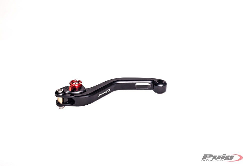 Losse koppelingshendel van het merk Puig. De hendel kan eenvoudig op een Puig koppelingsadapter gemonteerd worden. De kleur van de hendel is zwart en de versteller rood.