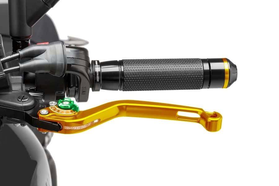 Losse koppelingshendel van Puig. De kleur van de hendel is goud en de versteller groen.De hendel kan eenvoudig op een Puig koppelingsadapter gemonteerd worden. De kleur van de hendel is goud en de versteller groen.- CNC gefreesde hendels- mooi design en perfecte afwerking- 6-voudig verstelbaar (ook tijdens het rijden)- perfecte ergonomie en pasvorm voor elke hand- 100 gram per hendel- lengte hendel 160 mmEigenschappen:Onderdeelsoort: koppeling hendelModel hendels: Puig langHendel kleur : goudKleur versteller: groenMerk: Puig