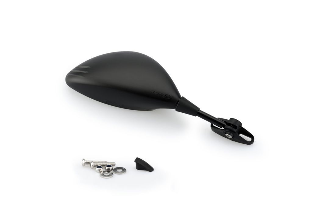 Mooie kuipspiegel van Puig. Montage op de kuip. Afmeting: breedte 132mm, hoogte 78mm. Montage op windscherm recht.