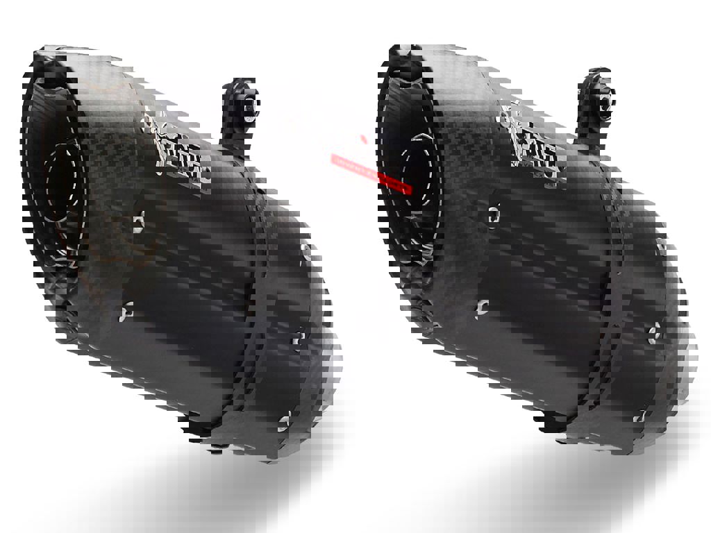 De buitenkant en de interne onderdelen van de demper zijn gemaakt van RVS, de endcap en klem zijn gemaakt van carbon.