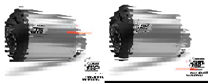 De Mivv Oval demper is leverbaar in titanium en carbon. De carbon cap is een technische/esthetische restyling, met een hoge thermische resistentie en een matte afwerking. De open gril op de kap geeft een exclusieve look en is techisch nuttig voor het afvoeren van de warmte. De dempers zijn E goedgekeurd en hebben een uitneembare DB-killer