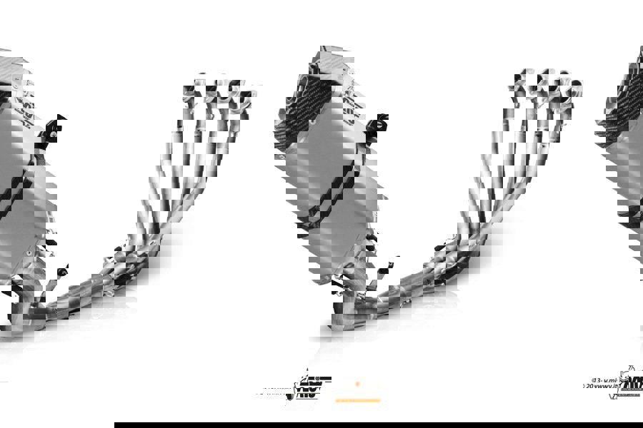 The power of the latest generation motorbikes and the more and more demanding road circulation regulations are forcing aftermarket exhaust system manufacturers to find solutions integrating stringent technical requirements and design. MIVV responds to all this by taking an innovative path with the Speed Edge project: a new silencer that exploits an important volumetry, capable of also housing the catalyst, whilst remaining creative, and without suffering the classic large tube effect. What makes this new “top of the range exhaust really special, is its capability to help reach an agreement between compliance with rules and speed. During the course of the SpeedEdge project, MIVV has considered both the extreme power of the most recent maxi-sport models, which impose the use of very large diameter manifolds, and the city use of the vehicle. SpeedEdge limits its space requirement thanks to a “squashed design on the inside, which means it can get as close as possible to the frame of the motorbike. In terms of materials used, MIVV has decided on a stainless steel covered version and, later, a carbon alternative (both with internal stainless steel construction). The distinguishing elements are the cup and the anchoring band made of precious carbon. The connections are bushed connections, the welds are all TIG welds, the finishes are extremely high quality.