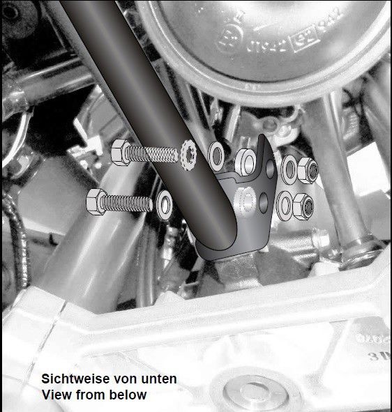 Beugel voor montage van de headlightcover wanneer er geen boven/tankbeugel is gemonteerd!