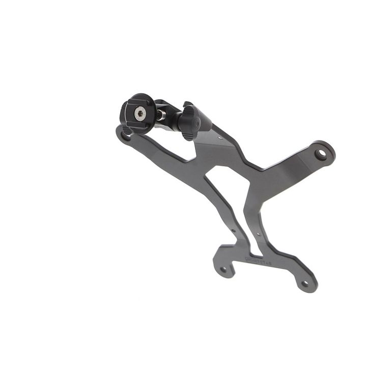 Created for the rider to add their SP Connect smartphone case, the EP Sat Nav Mount bracket places the smartphone in line of sight for guidance on the move. Machined from one piece of aluminium and then reinforced with the signature hard-wearing EP black powder-coating, the lightweight bracket secures to the screen support framework. The SP Connect interface is already mounted to the bracket, ready for the rider to attach their choice of smartphone interface case.