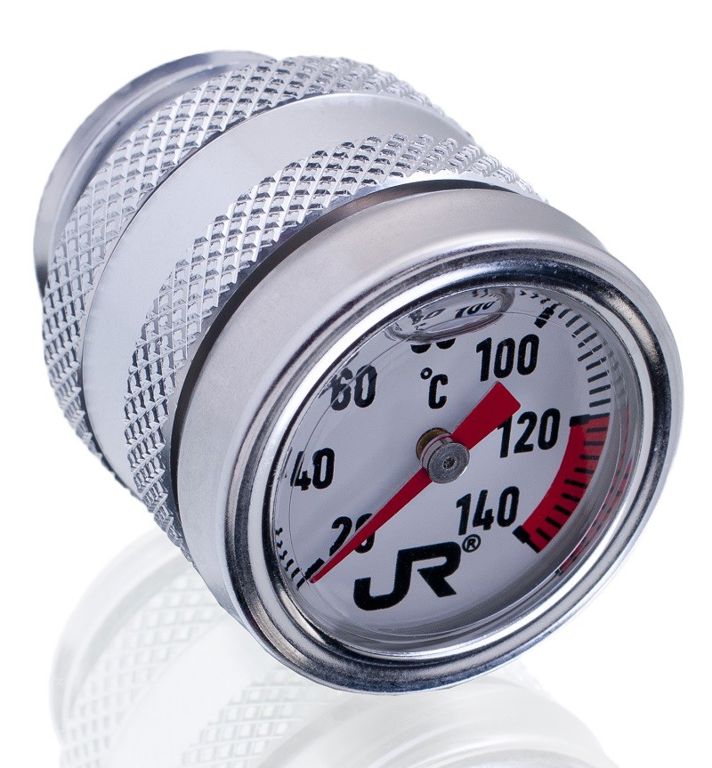 Olie temperatuurmeter die eenvoudig in plaats van de olievuldop geplaatst wordt.