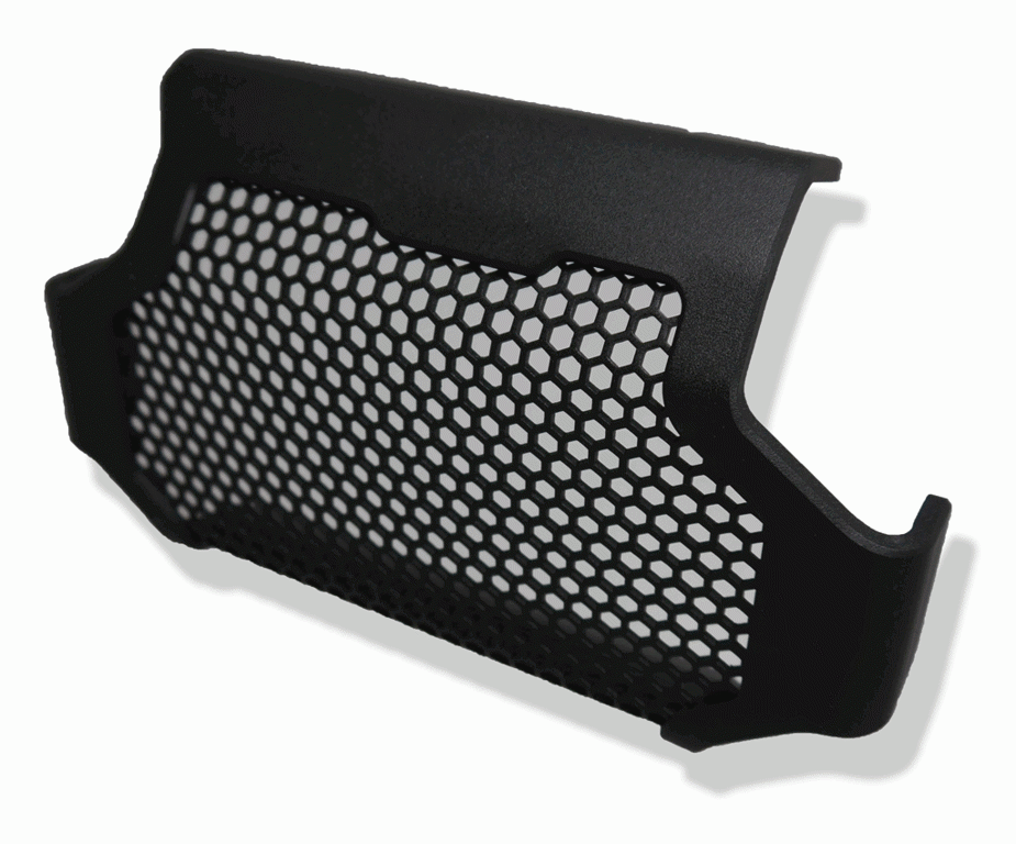 De zeshoekige gaten optimaliseren de luchtstroom en geven tevens een maximale bescherming tegen opspattend vuil van de weg.