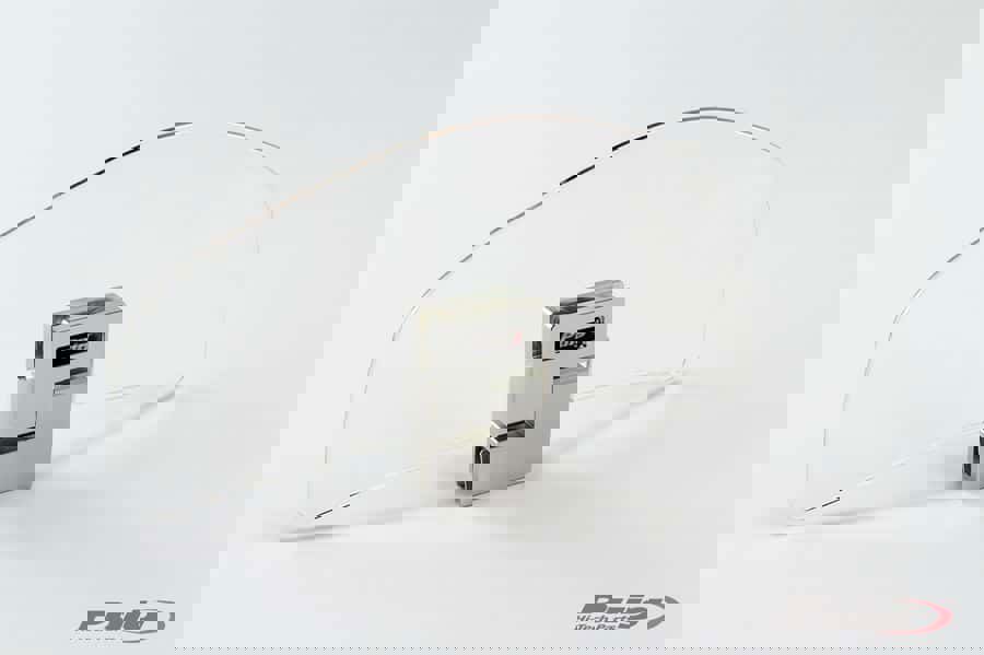 Ronde onderkant. Het aluminium deel schuift over de originele ruit, en wordt vastgezet met 2 schroeven. Het opzetruitje is verstelbaar. Afmeting: 191mmx92mm