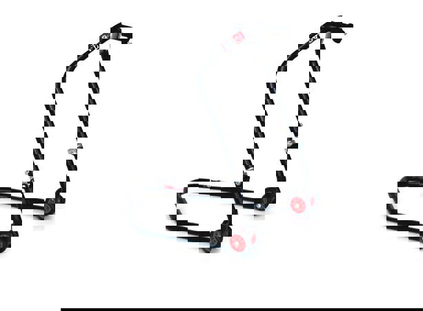 Deze paddock stand voorzijde voor balhoofdopname word geleverd inclusief 7-delige pinnen kit. -Zwart gecoat -In hoogte verstelbaar -4 rubberen wielen -Made in Italy -Zeer makkelijk voor wiel en/of voorvork demontage