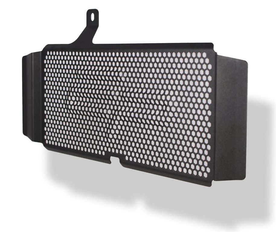 Deze radiatorcover van Evotech Performance is speciaal voor uw motor ontworpen, dus heeft een perfecte pasvorm en is makkelijk te monteren. Er zijn geen aanpassingen aan uw motor nodig! De zeshoekige gaten optimaliseren de luchtstroom en geven tevens een maximale bescherming tegen opspattend vuil van de weg. De radiatorcover bied een opmerkelijke sterkte/gewicht verhouding. Alleen het beste materiaal wordt gebruikt, de radiatorcover wordt CNC gefreesd uit vliegtuig aluminium. Afgewerkt met een duurzame zwarte poedercoating, de radiatorcover wordt geleverd inclusief bevestiging materiaal en montage handleiding.