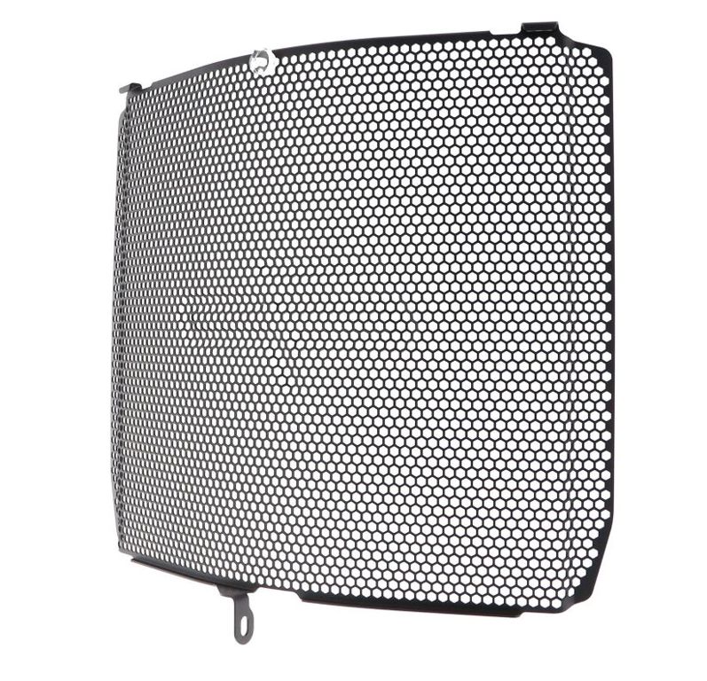 Radiatorcover in de kleur zwart gemaakt van aluminium voor de Evotech Performance Kawasaki H2 SX SE+ ’19-