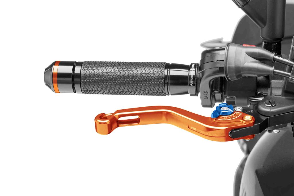 Remhendel van het merk Puig. De hendel kan eenvoudig op een Puig rem adapter gemonteerd worden.- CNC gefreesde hendels- mooi design en perfecte afwerking- 6-voudig verstelbaar (ook tijdens het rijden)- perfecte ergonomie en pasvorm voor elke hand- 100 gram per hendel- lengte hendel 129 mmEigenschappen:Onderdeelsoort: remhendelModel hendels: Puig kortHendel kleur : oranjeKleur versteller: blauwMerk: Puig