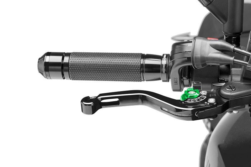 Losse remhendel van Puig. De kleur van de hendel is zwart en de versteller groen.Losse remhendel van het merk Puig. De hendel kan eenvoudig op een Puig rem adapter gemonteerd worden.De kleur van de hendel is zwart en de versteller groen.- CNC gefreesde hendels- mooi design en perfecte afwerking- 6-voudig verstelbaar (ook tijdens het rijden)- perfecte ergonomie en pasvorm voor elke hand- 100 gram per hendel- lengte hendel 129 mmEigenschappen:Onderdeelsoort: remhendelModel hendels: Puig kortHendel kleur : zwartKleur versteller: groenMerk: Puig