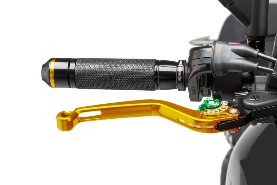 Losse remhendel van het merk Puig. De kleur van de hendel is goud en de versteller groen.Losse remhendel van het merk Puig. De hendel kan eenvoudig op een Puig rem adapter gemonteerd worden.De kleur van de hendel is goud en de versteller groen.- CNC gefreesde hendels- mooi design en perfecte afwerking- 6-voudig verstelbaar (ook tijdens het rijden)- perfecte ergonomie en pasvorm voor elke hand- 100 gram per hendel- lengte hendel 160 mmEigenschappen:Onderdeelsoort: remhendelModel hendels: Puig langHendel kleur : goudKleur versteller: groenMerk: Puig