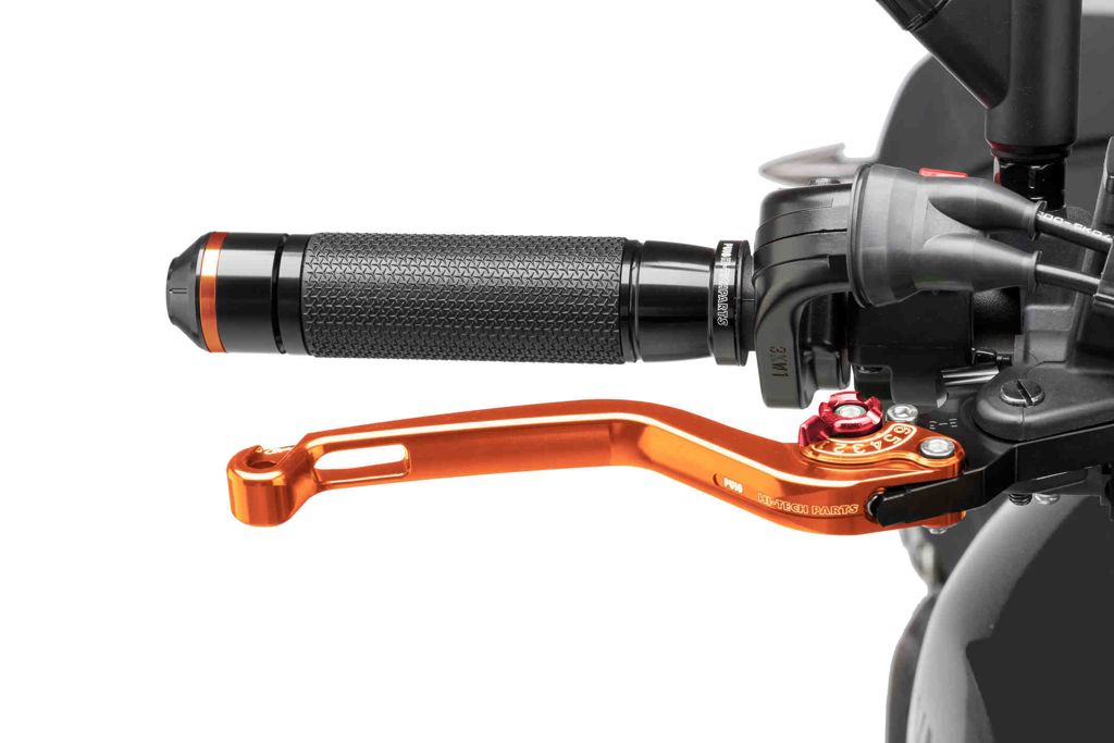 Remhendel van het merk Puig. De hendel kan eenvoudig op een Puig rem adapter gemonteerd worden.- CNC gefreesde hendels- mooi design en perfecte afwerking- 6-voudig verstelbaar (ook tijdens het rijden)- perfecte ergonomie en pasvorm voor elke hand- 100 gram per hendel- lengte hendel 160 mmEigenschappen:Onderdeelsoort: remhendelModel hendels: Puig langHendel kleur : oranjeKleur versteller: roodMerk: Puig