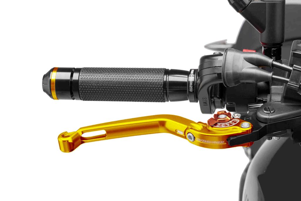 Remhendel van het merk Puig. De hendel kan eenvoudig op een Puig rem adapter gemonteerd worden.Losse remhendel van het merk Puig. De hendel kan eenvoudig op een Puig rem adapter gemonteerd worden. De kleur van de hendel is goud en de versteller oranje.- CNC gefreesde hendels- mooi design en perfecte afwerking- 6-voudig verstelbaar (ook tijdens het rijden)- perfecte ergonomie en pasvorm voor elke hand- 100 gram per hendel- lengte hendel 160 mmEigenschappen:Onderdeelsoort: remhendelModel hendels: Puig opklapbaarHendel kleur : goudKleur versteller: oranjeMerk: Puig