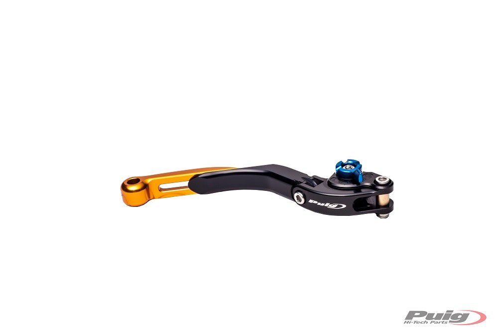 Remhendel Puig opklapbaar/ uitschuifbaarLosse remhendel van het merk Puig. De hendel kan eenvoudig op een Puig rem adapter gemonteerd worden.- CNC gefreesde hendels- mooi design en perfecte afwerking- 6-voudig verstelbaar (ook tijdens het rijden)- perfecte ergonomie en pasvorm voor elke hand- 100 gram per hendel- lengte hendel verstelbaar van 133 tot 153 mmEigenschappen:Onderdeelsoort: remhendelModel hendels: Puig opklapbaar/ uitschuifbaarHendel kleur : zwartKleur versteller: blauwKleur uitschuifgedeelte: goudMerk: Puig