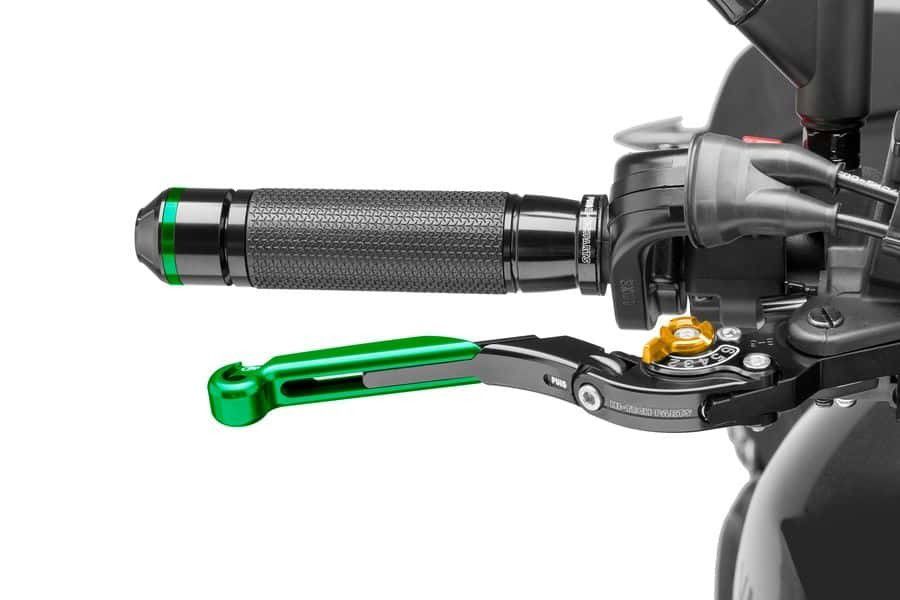 Remhendel Puig opklapbaar/ uitschuifbaarLosse remhendel van het merk Puig. De hendel kan eenvoudig op een Puig rem adapter gemonteerd worden.- CNC gefreesde hendels- mooi design en perfecte afwerking- 6-voudig verstelbaar (ook tijdens het rijden)- perfecte ergonomie en pasvorm voor elke hand- 100 gram per hendel- lengte hendel verstelbaar van 133 tot 153 mmEigenschappen:Onderdeelsoort: remhendelModel hendels: Puig opklapbaar/ uitschuifbaarHendel kleur : zwartKleur versteller: goudKleur uitschuifgedeelte: groenMerk: Puig