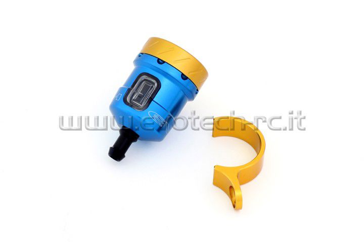 Mooi aluminium gefreesd remvloeistofpotje met kijkglas van EvotechHet reservoir wordt geleverd in blauw, de deksel en de beugel goudInhoud 15mlLeverbaar in diverse kleurcombinaties, het reservoir en de deksel+beugel kunnen in de gewenste kleur besteld worden.Het reservoir kan worden gebruikt voor de achterrem en koppeling.Remvloeistofpotje aluminium met kijkglas Evotech kleinEigenschappen:Merk: EvotechRemtechniekdiversen: remvloeistofpotjes EvotechOnderdeelsoort: remtechniek