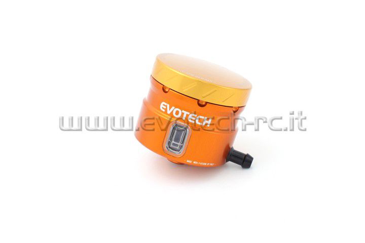 Zeer mooi aluminium remvloeistofpotje met kijkglas van Evotech. Oranje potje met goude dekselHet potje is bedoeld voor de voorrem en heeft een haakse uitgang. Inhoud 30mlWordt geleverd met ophangbeugeltje. De deksel en het reservoir zijn in verschillende kleuren leverbaar. Remvloeistofpotje Evotech groot met haakse uitgangThe new Evotech front brake reservoir (DOT 4 compatible) has been designed both for racing use and to give a touch of beautiful style to your motorcycle. Can be matched in 36 different color combinations by choosing cap and body colors. All are equipped with a unique vent circuit able to control the liquid level during consumption. Eigenschappen:Merk: EvotechRemtechniekdiversen: remvloeistofpotjes EvotechOnderdeelsoort: remtechniek