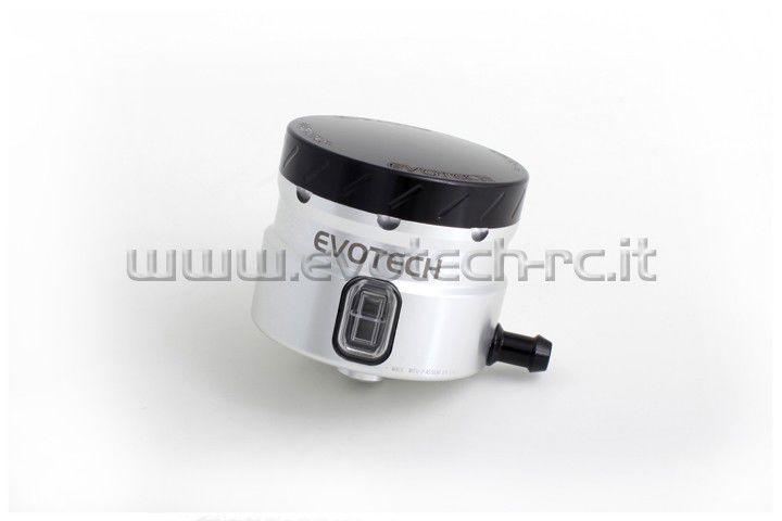 Zeer mooi aluminium remvloeistofpotje met kijkglas van Evotech. Zilver potje met zwarte dekselHet potje is bedoeld voor de voorrem en heeft een haakse uitgang. Inhoud 30mlWordt geleverd met ophangbeugeltje. De deksel en het reservoir zijn in verschillende kleuren leverbaar. Remvloeistofpotje Evotech groot met haakse uitgangThe new Evotech front brake reservoir (DOT 4 compatible) has been designed both for racing use and to give a touch of beautiful style to your motorcycle. Can be matched in 36 different color combinations by choosing cap and body colors. All are equipped with a unique vent circuit able to control the liquid level during consumption. Eigenschappen:Merk: EvotechRemtechniekdiversen: remvloeistofpotjes EvotechOnderdeelsoort: remtechniek