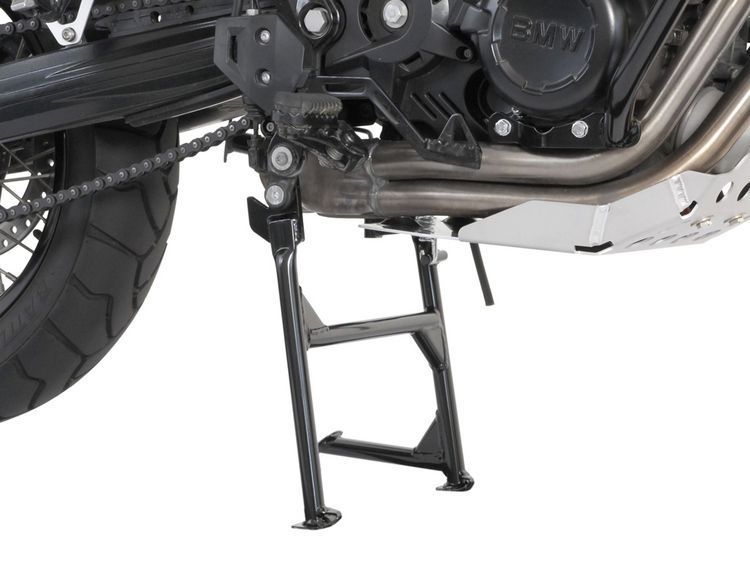The most important stand option for any motorcycle, inexplicably not fitted as standard. The facts:- Optimum stability irrespective of load.- Perfect lever ratios make it easy to prop the bike.- Existing mounting points used for simple installation and high stability.- Hard-wearing stand stop.- Double spring set for maximum safety.- Thick-walled and powder-coated steel tube.- With ABE approval and installation instructions.- Made in Germany. Perfect in size and leverage ratios, and ideally suited in design to the Twin GS, these centre stands outperform the original in every area. Simple to fit, come supplied with all mounting parts. Note: Not suitable for models with the LOW suspension!