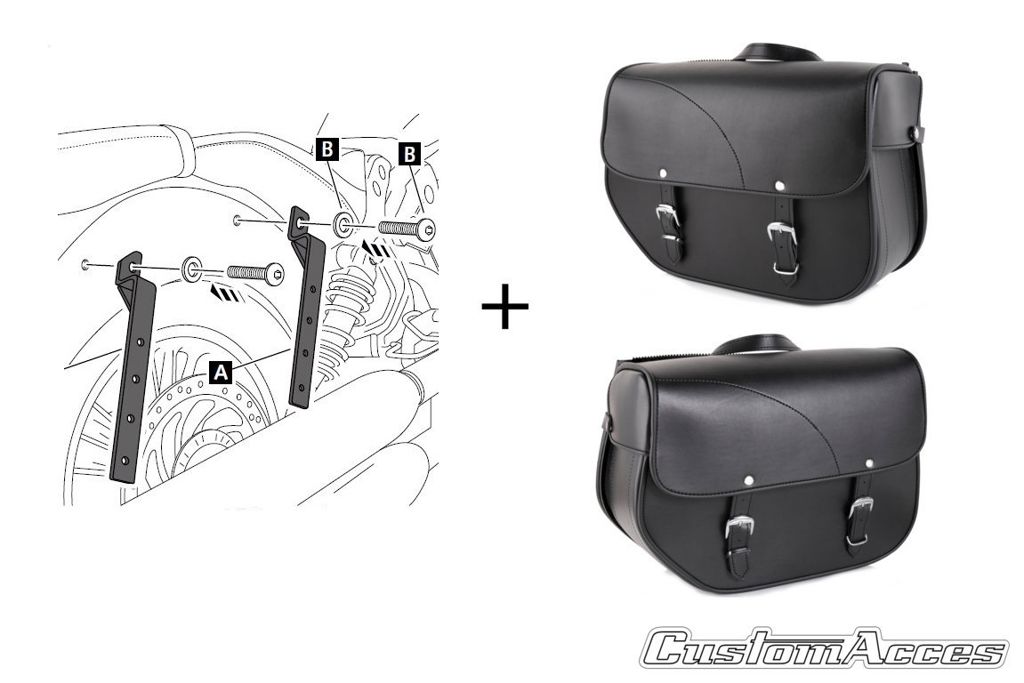 Zadeltas Sant Louis met universele afstandhouders CustomAcces links voor Harley Davidson Sportster 883 IRON