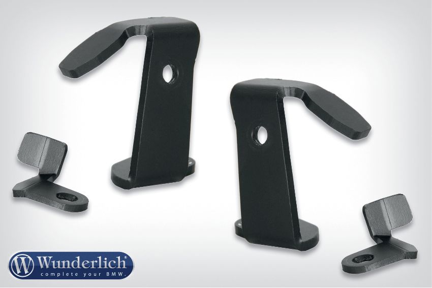 Many GS owners think twice before taking the rider seat off, because they know what’s coming next. We’ve all heard the poor souls spine-chilling wail born out of sheer frustration while trying to re-fit the seat again and again. The dreadful seat locking mechanism drove us, too, to the brink of clinical insanity - we simply had to do something about it! Luckily for all GS rids DOCTOR Wunderlich came up with the effective cure: Simply attach the metal guides to the bike and the seat slides into position and locks almost on its own! Models up to 2007 have often already lost the insufficiently secured original small plastic guide, which made attaching the seat even worse. For these cases we have included a strong replacement guide that’s bolted to the main body and closes the gap. Once the sliders are fitted they stay permanently attached to the bike and make sure that taking the seat off and refitting it is an easy and stress-free task. Note: Suitable for all Wunderlich ERGO and original For Wunderlich seats.For BMW seats in high position, but not for original BMW LOW (820 mm) seat.