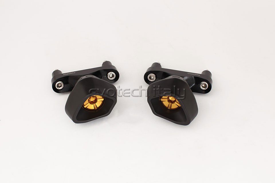 Super mooie set sliders van Evotech Met aluminium gefreesde montage bracketsModel Anti-Shock, absorbeert de impact van een valDe main body is gemaakt van vliegtuig billet aluminium en zwart geanodiseerdHet aluminium binnen deel is in diverse kleuren leverbaar!De nieuwe Evotech anti-schok frame sliders zijn ontworpen met het oog op het opvangen van de gevolgen van een val. Dit betekent dat het effect wordt geabsorbeerd door de sliders in plaats van direct op het frame. Bij een val wordt de slider over een conische spacer geschoven. Hierdoor wordt de energie van de impact verlaagd. Tests die zijn uitgevoerd in zowel laboratorium en op straat toonde een significante daling van de impact op het frame ten opzichte van de normale sliders. De slider is gemaakt van een kunststof mix met glasvezel. Het combineert high impact absorptie en glijweerstand tot lage wrijving op het asfalt. Op deze manier glijdt de pad over het asfalt zonder overmatige slijtage en gevaarlijke 'springen'. De aerodynamische vorm van de slider geeft niet alleen een agressievere look aan de motor, maar vermindert ook de kans dat de slider blijft hangen achter een obstakel. Op de slider is ook een markering/schaal aangebracht zodat na een val een indicatie van de kracht wordt gegraveerd. De main body is gemaakt van vliegtuig billet aluminium en zwart geanodiseerd voor een lange levensduur. De set is speciaal gemaakt om de impact van een val te verlagen aan het frame. Alle onderdelen zijn los leverbaar.Eigenschappen:Merk: EvotechOnderdeelsoort: Slider