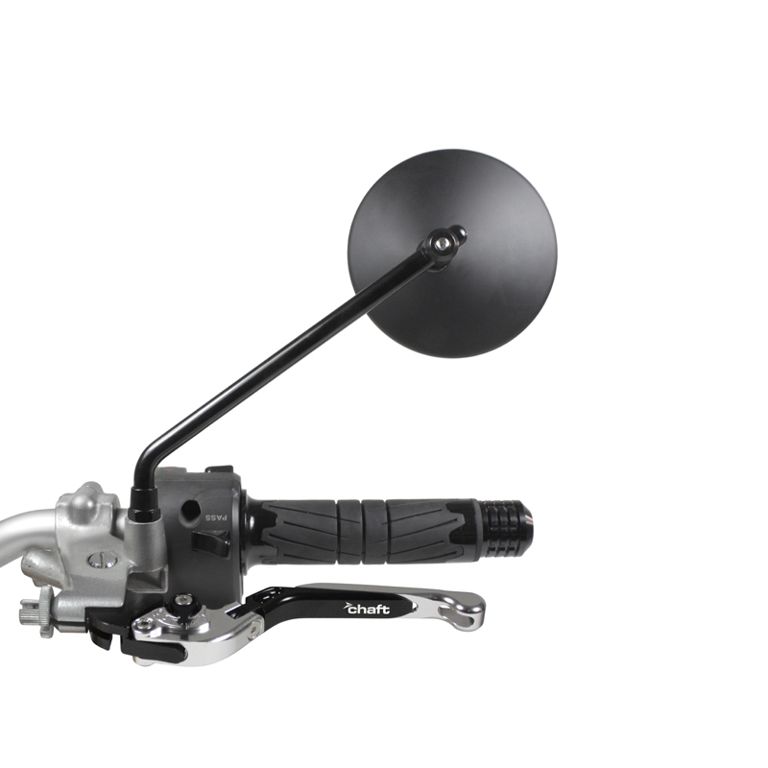 Mooie set zwarte stuurspiegels van Chaft, model Iron -set voor de linker- en rechterkant -verstelbaar -met CE keur -montage op het het stuur, met M10x1,25 aansluiting -afmeting: totale breedte: 180mm, glas: 105mm